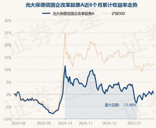 本站消息,1月27日,光大保德信国企改革股票A最新单位净值为1.249元,累计净值为1.249元,较前一交易日下跌0.79%。历史数据显示该基金近1个月下跌2.95%,近3个月下跌3.63%,近6个月上涨0.4%,近1年上涨7.12%。该基金近6个月的累计收益率走势如下图: